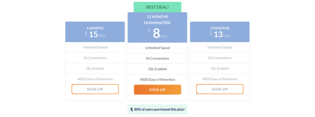 Astraweb is a reliable, no-frills Usenet provider with secure SSL connections, stable performance, and flexible plan types. Its block accounts are a rare advantage, especially for those who don’t need unlimited subscriptions.