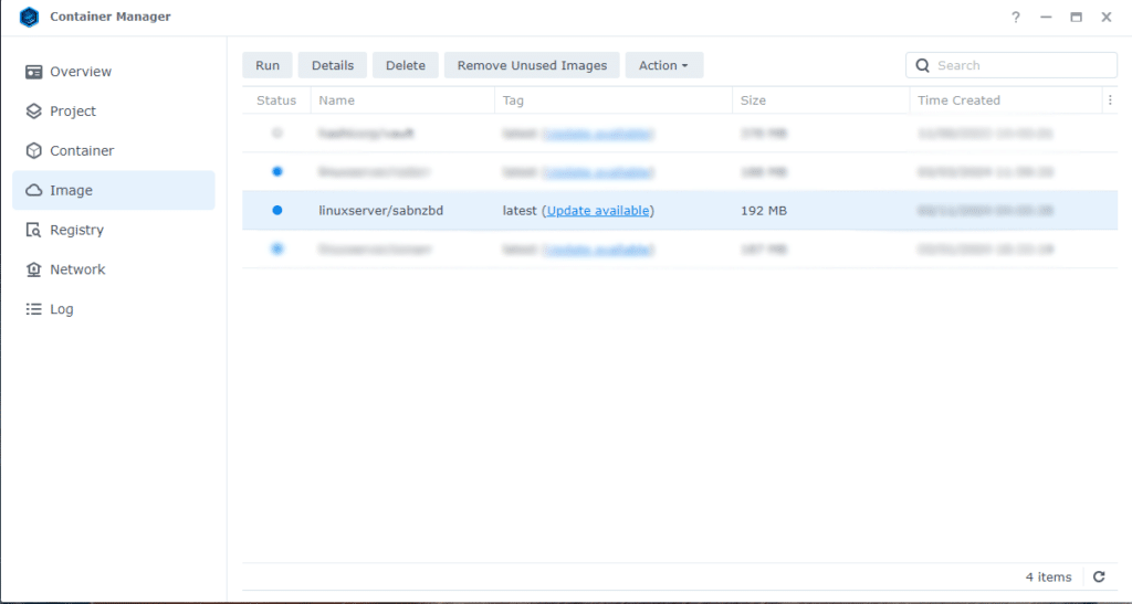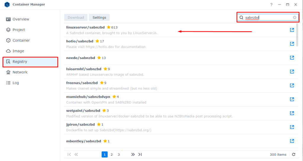 - Open Container Manager and select “Registry” from the menu on the left.