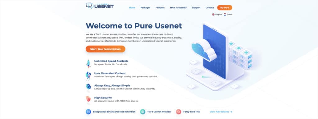 Pure Usenet is another budget European Usenet provider. While they don’t offer a lot of features, they excel in quality, reliability, and speedy transfers. It’s an ideal Dutch provider that doesn’t require a Dutch IP to sign up. Moreover, it’s a wonderful, inexpensive way to get started with Usenet or specifically EU-based service.
